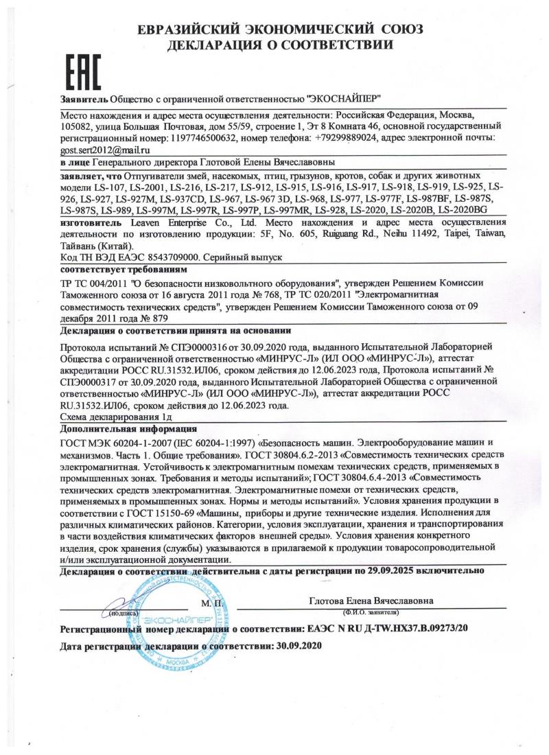Ультразвуковой отпугиватель «ЭкоСнайпер - LS-925» создан специально для борьбы с неприятными насекомыми и грызунами, которые находятся на территории самых разных зданий и территорий, обладающих небольшой площадью.