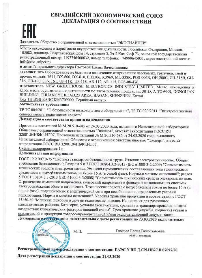 Отпугиватель змей «Экоснайпер CH-316B»